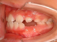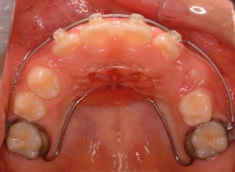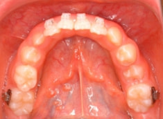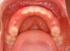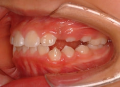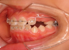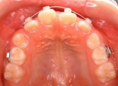 治療分析:日本人の反対咬合や下顎前突は、上顎の劣成長を伴なうことが多いので、上顎を側方拡大と前方に牽引しました。側方拡大方法は急速拡大で、正中口蓋縫合の拡大を行い、横口蓋縫合を剥がす効果で、前方牽引の効果を促進します。