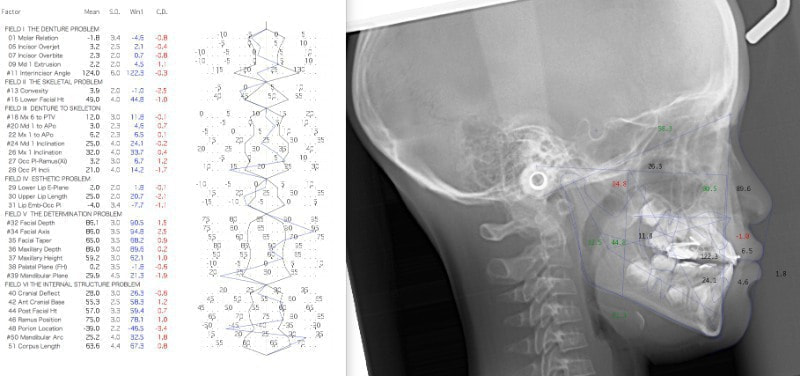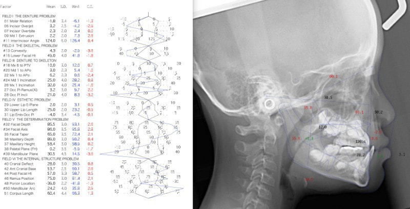 検査時のセファロ分析側貌: