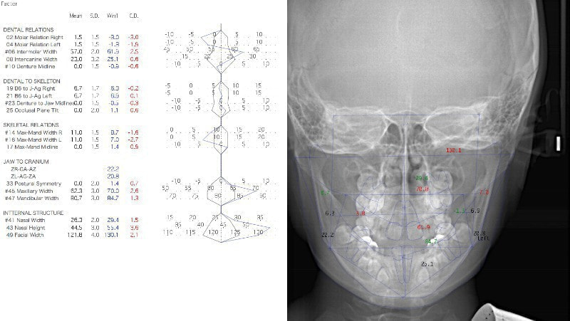 顔面、鼻腔の幅径はさほど劣成長ではなく、非対称も軽度です。