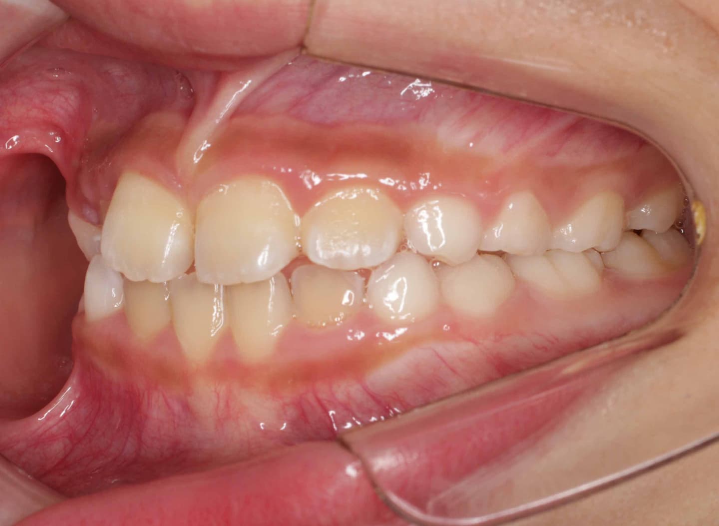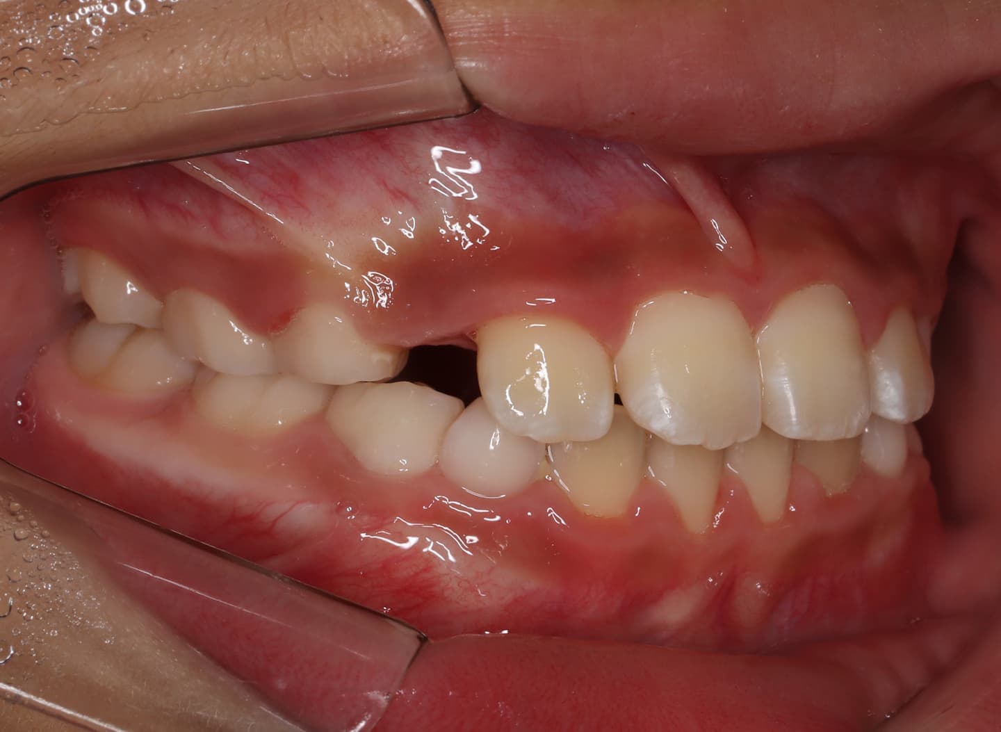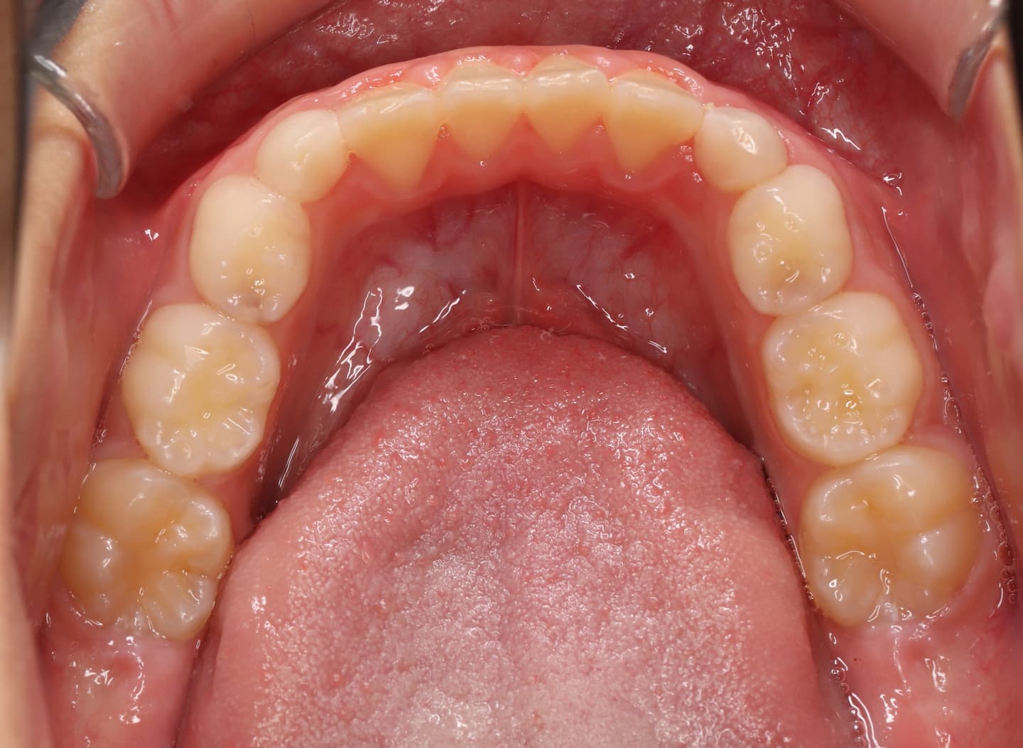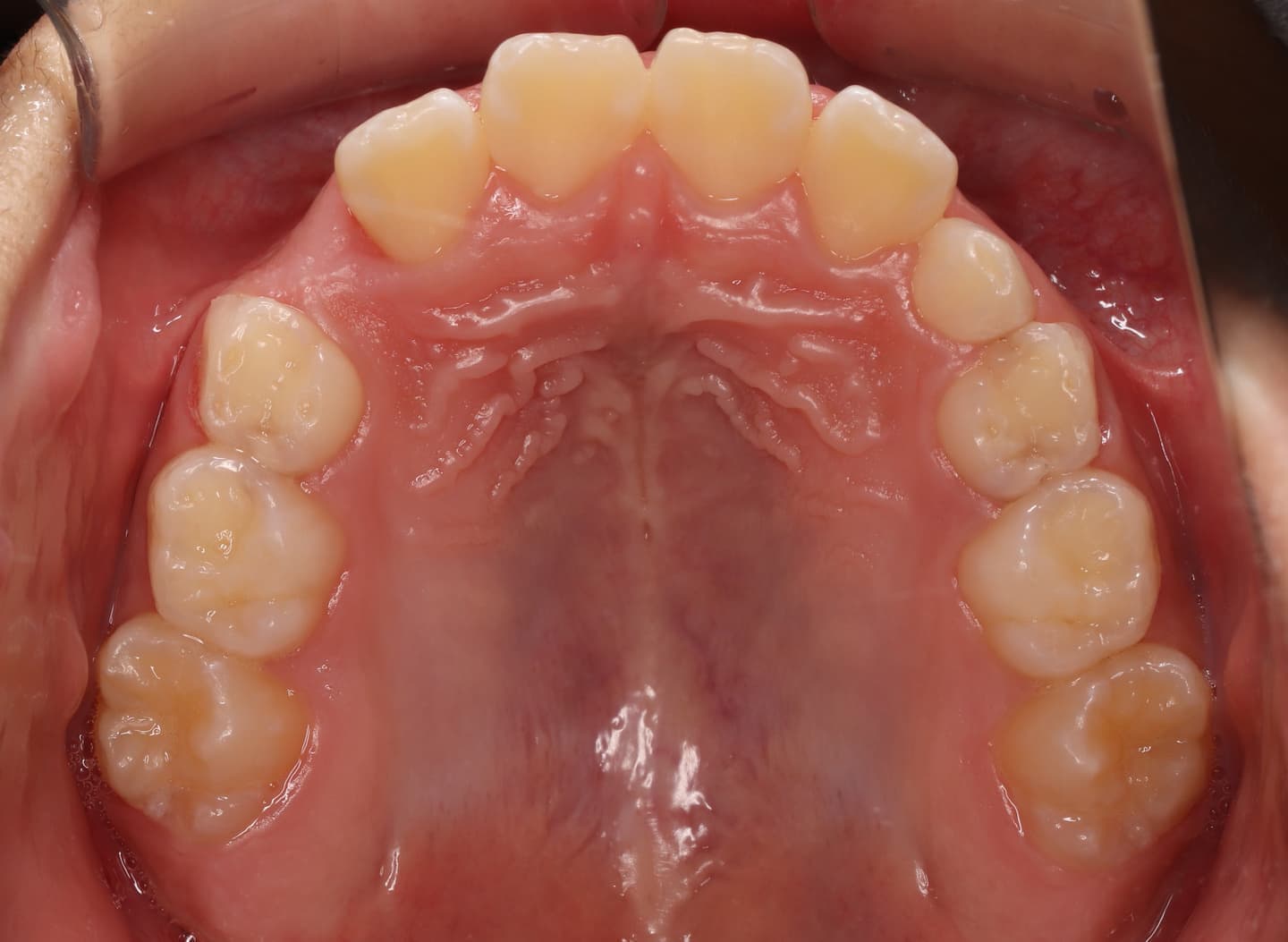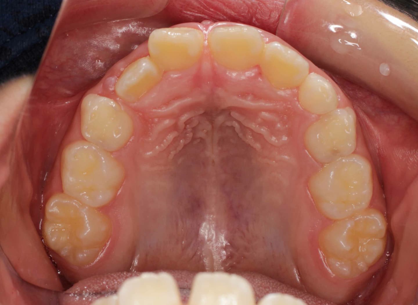 右上乳犬歯が既に脱落しており、右上犬歯の萌出スペースがゼロになっています。