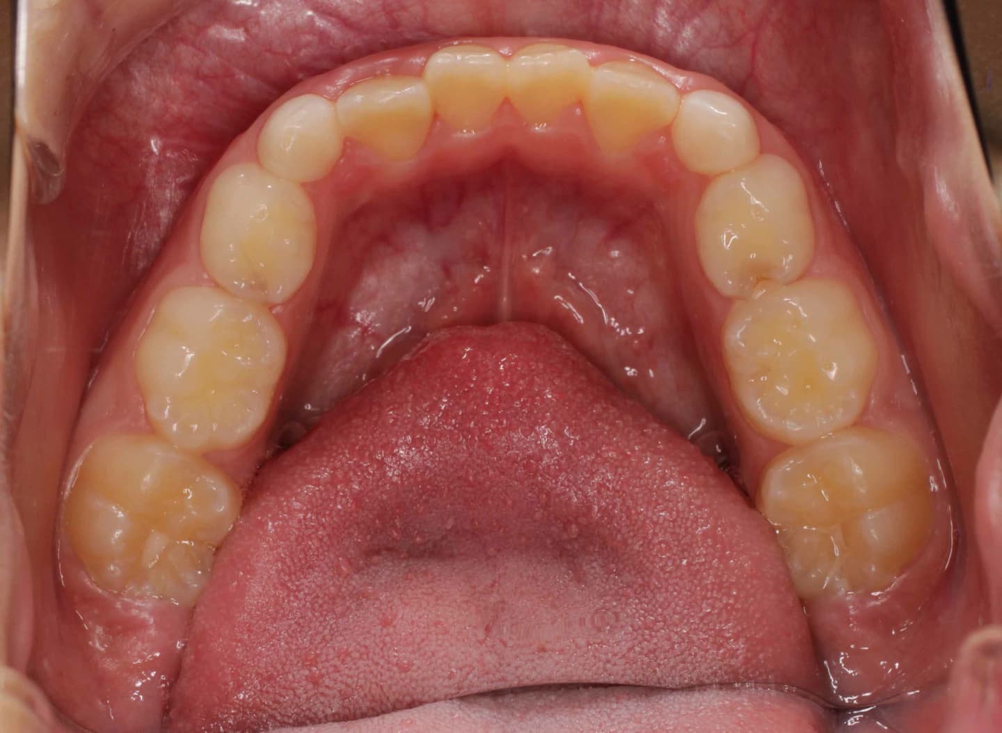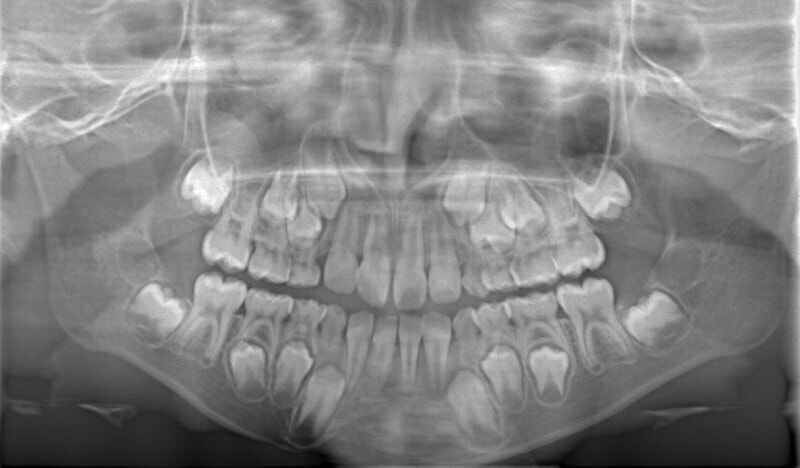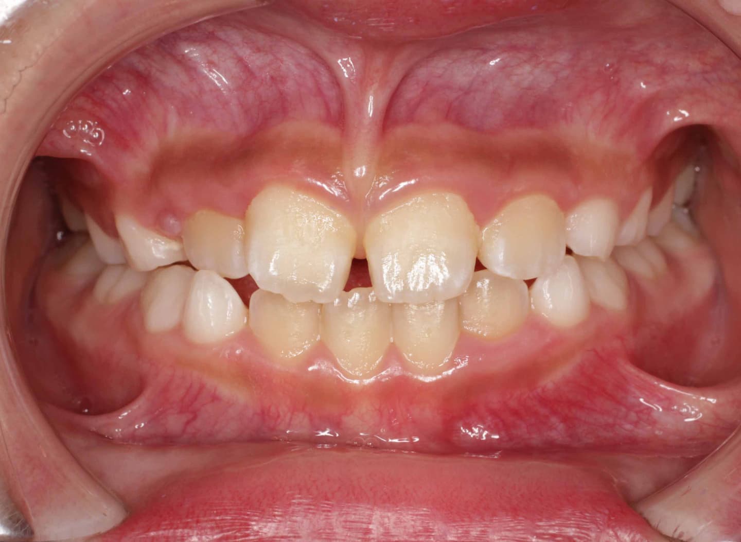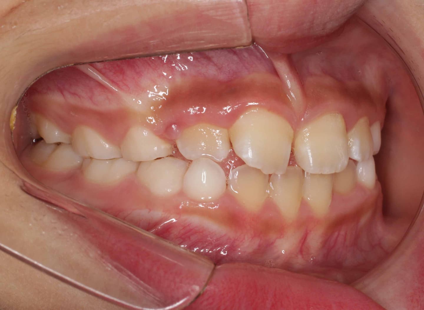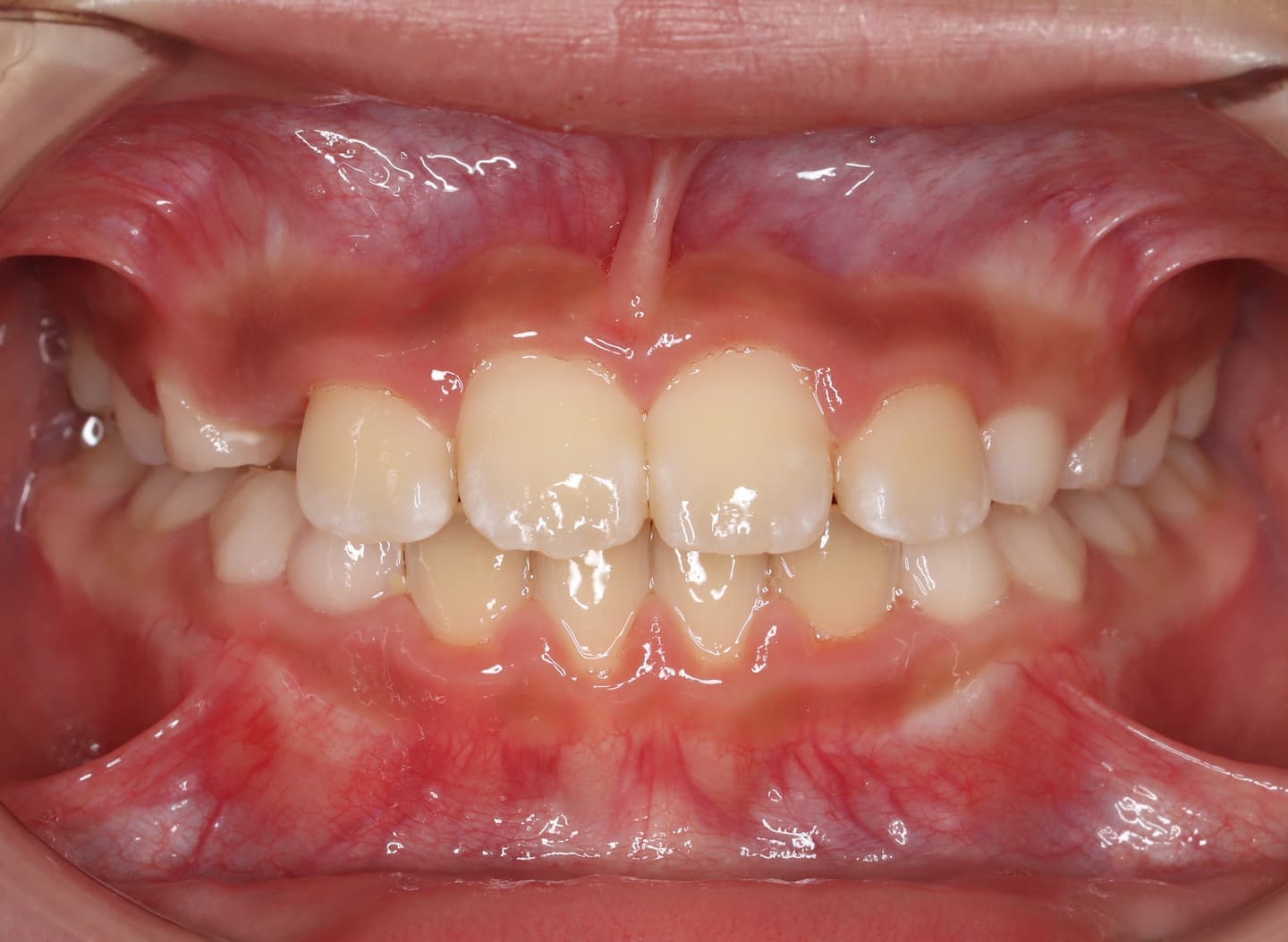 右上乳犬歯が既に脱落しており、右上犬歯の萌出スペースがゼロになっています。