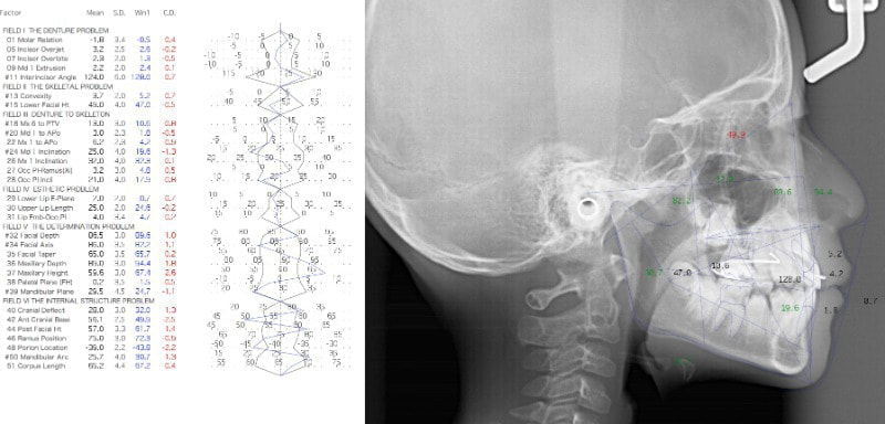 検査時のレントゲン分析では、上下顎の関係は、上顎の劣成長があり下顎前突傾向という値がでておりましたが、前歯ジャンプ後はフェイスマスクの効果もあり、上下顎の関係は正常化しています。