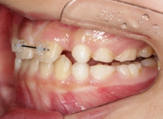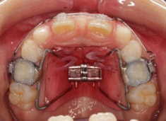 治療法:拡大装置+フルパッシブブラケット(クリアスナップ)+フェイスマスク+上顎2番欠如部分は一時的ダミー補綴処置