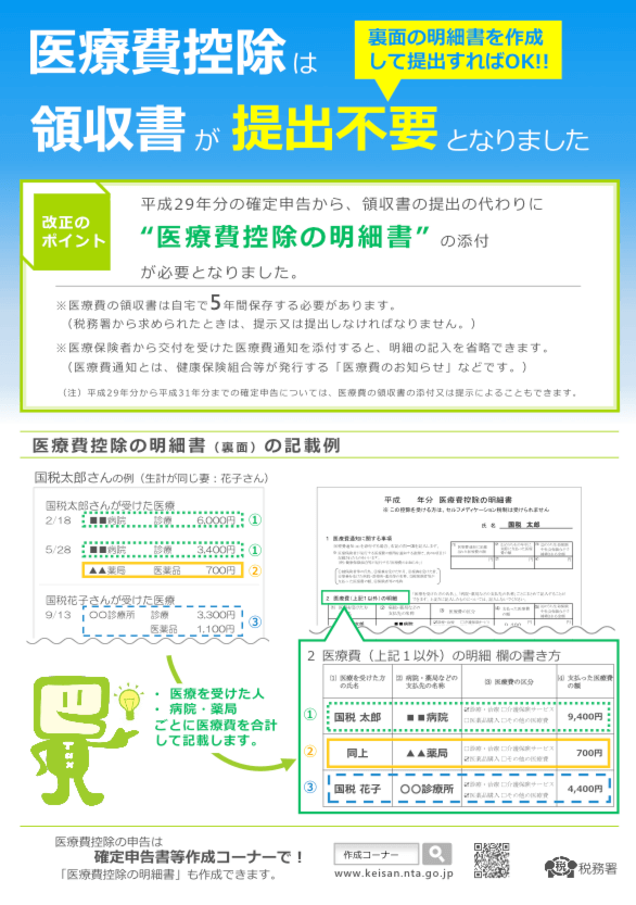 その年の1月1日から12月31日までの間に自己又は自己と生計を一にする配偶者やその他の親族のために医療費を支払った場合には、一定の金額の所得控除を受けることができます。これを医療費控除といいます。
